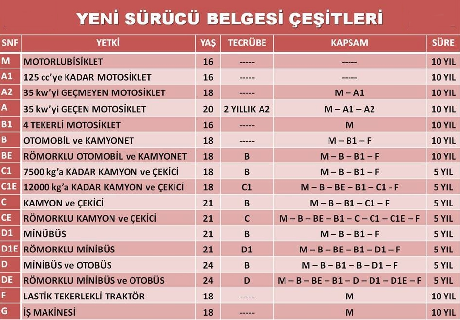 Detaylı İnceleEhliyet alma sürecinde Milli Eğitim Bakanlığınca yapılan iki sınav vardır: 1. E-sınav 2. Direksiyon (uygulama) sınavı. E-SINAV SÜRECİ E-sınavda; 12 soru İlk Yardım; 23 Soru Trafik ve